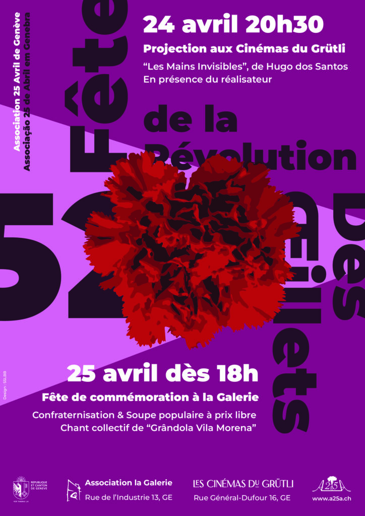 Le 25 avril, à La Galerie, on célèbre la Révolution des Œillets et on replonge dans les luttes des Portugais·es à Genève et en Suisse romande : contre le régime salazariste, pour les droits des immigré·es et des travailleur·euses en Suisse.